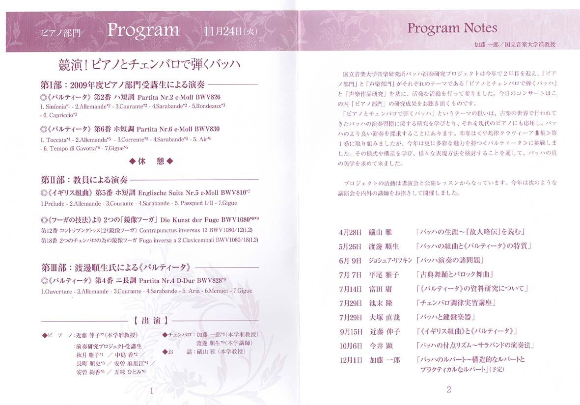 almost all of J. S. Bach's soloistic keyboard works. Her recital featuring "